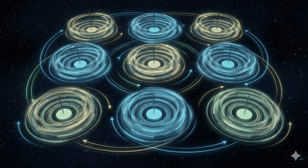 Emphasize mathematical precision, symmetry, and perfect alignment across the 3×3 grid.”